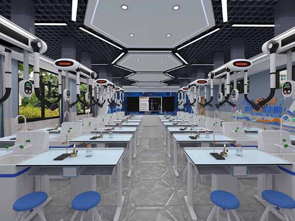 吊装实验室是一种新型的实验室设计,将实验台、仪器设备等通过吊装的方式固定在天花板上,地面空间释放出来,可根据教学需要灵活摆放课桌椅,